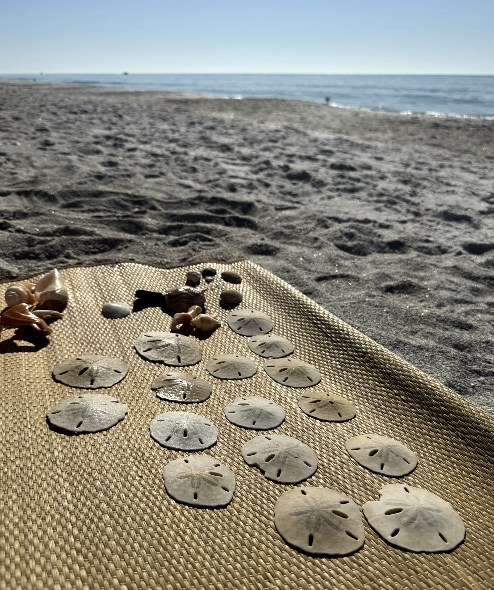 The beach totes are large enough to carry a few beach towels, lotions, a hat, and water bottles. Designed and intended to be a true tote, the handles are short enough to allow the bag to be carried by hand (and not hit the ground) or pulled over the shoulder for easy beach hauling.